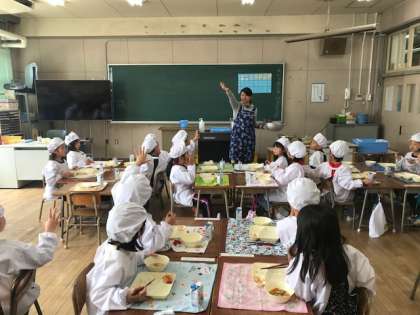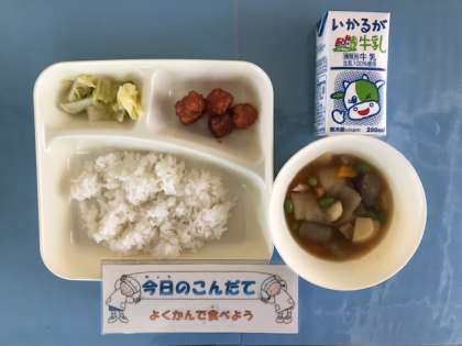 1年生が、初めて給食の配膳をしました。少し残っていた、オーロラ煮をじゃんけんをしておかわりしてくれていました。