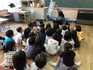 一年生にとっては、小学校に入学してから初めてのよみきかせです。みんな目を輝かせ、楽しんでいました。