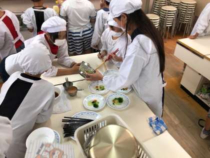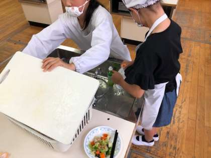 今回の調理実習は「ゆで野菜作り」と「ドレッシング作り」をしました。2回目なので、以前よりも手際良く活動することが出来ました。
