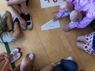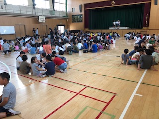 学校の中のいろいろな場所や人についてのクイズをみんなで考えました。