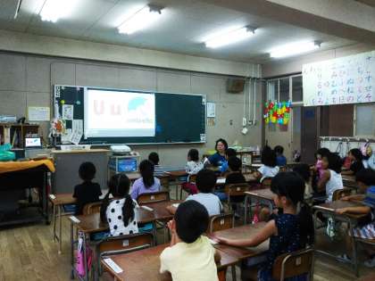 大きな声で、アルファベットを発音したり、英語の歌を歌ったりしています。