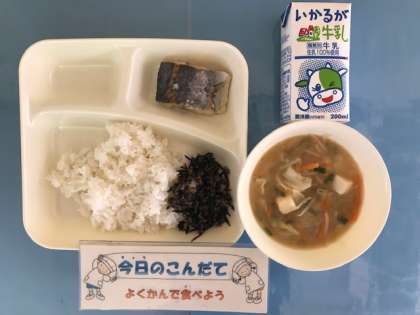 6月11日(火)の献立は「さごし塩焼き・みそ汁・牛ひじきそぼろ・ごはん・牛乳」でした。