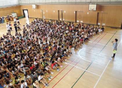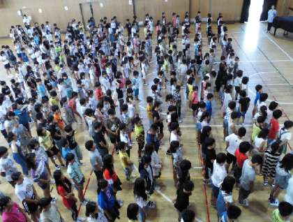 今朝も全校児童で元気にあいさつし、朝会で校長先生から、みんなでがんばれた運動会の各学年のよかったところをほめてもらいました。地域の皆様からも、たくさんのお褒めの言葉をいただいたことも子ども達に伝えられました。
