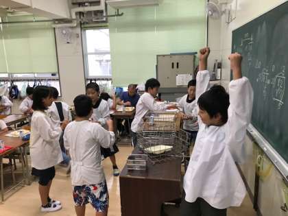 いつもの給食のハヤシライスは、小麦粉を使ったブラウンルウを使用していますが、今日のハヤシライスは、小麦アレルギーの人も食べられるように、小麦粉を使わずに米粉(上新粉)を使用してつくりました。