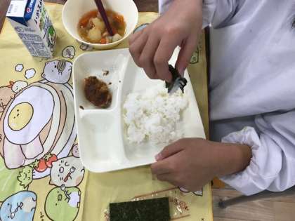 焼きのりは、ごはんを巻いて食べました。
