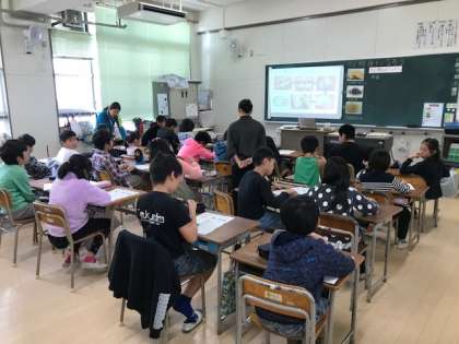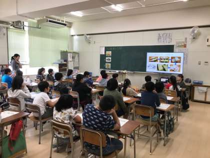 新今宮小学校から栄養教諭が来てくださって、「かん物博士になろう」のテーマで栄養授業がありました。