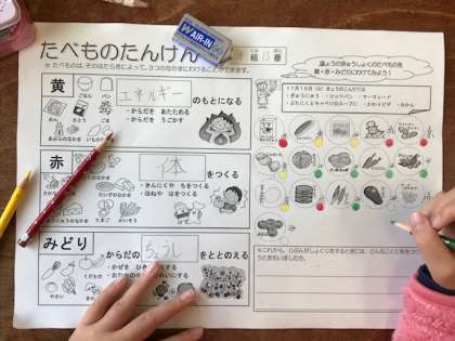 給食は、三色(黄・赤・緑)がそろいバランスよく作られています。