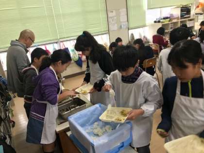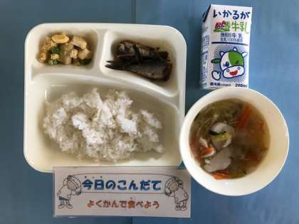 12月6日(金)の献立は「いわしのしょうが煮・うすくず汁・高野豆腐の卵とじ・ごはん・牛乳」でした。