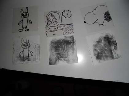 学校の職員室にもあるコピー機の仕組みについて学習した後、自分たちでコピーに挑戦しました。自分で書いたイラストやキャラクターがうまくコピーできるか…。京セラのみなさんに教えてもらいながら、「実験ってたのしい!!」と、何度もチャレンジしていました。