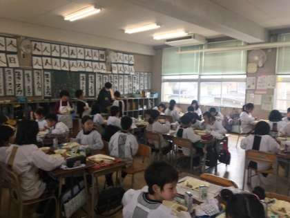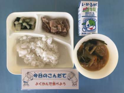 1月30日(木)の献立は「豚肉のごまだれ焼き・みそ汁・きくなとはくさいのおひたし・ごはん・牛乳」でした。