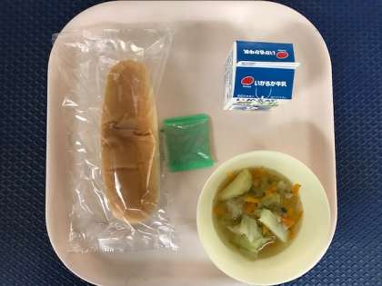 パン、牛乳ともう一品の給食でしたが、久しぶりの給食を「おいしいよ!」と残さず食べていました。