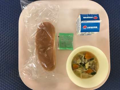 今日の一品は、豚肉が主材で、たまねぎ、にんじん、キャベツ、たけのこ、にらと野菜たっぷりの中華煮でした。