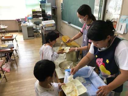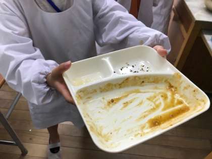 子どもたちに、「今日のカレーの野菜は何が入ってたかわかる?」との問いかけに、