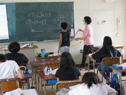 (2枚目)5年生 算数の時間です。習熟度別グループで、学習しています。