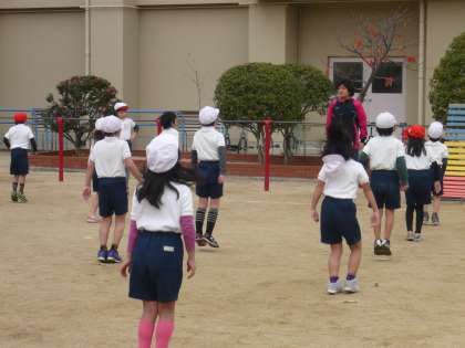 寒いので入念に準備体操をしてからスタート!