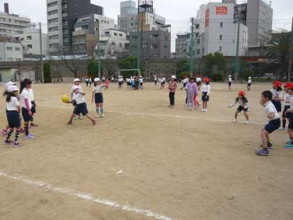 1年生の頃にくらべて、ボールを遠くまで投げたり、チームで作戦を考えてボールをまわしたりできるようになりました。