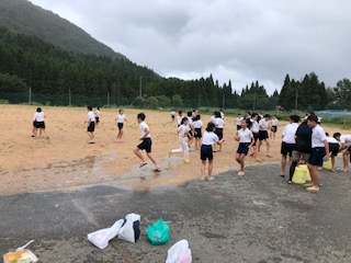 オリエンテーリングの後は、広い運動場で水風船遊びをしました。今年はプール水泳がなかったので、その分も思いっきり楽しみました。