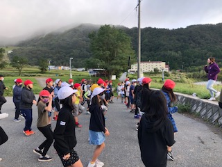 さわやかな天気です。朝のYMCA体操で目覚め中です。みんな元気に2日目を迎えました