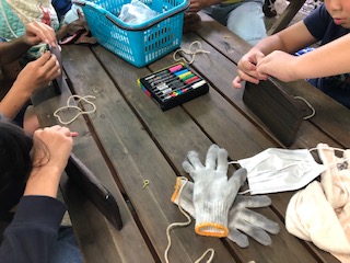 磨いたあとは、金具・ひもをつけます