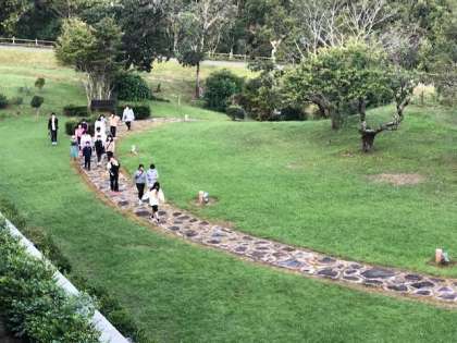 2日目宿舎、朝の体操・散歩・朝食の様子です。