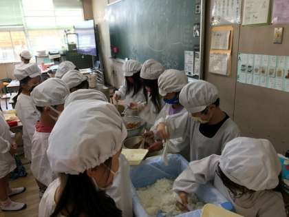 給食室で作る、手作りのふりかけのおかかなっ葉はごはんがすすみました。