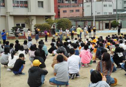 いつもの月曜は、放送での児童朝会をしていますが、今朝は久しぶりに、運動場で朝会がありました。