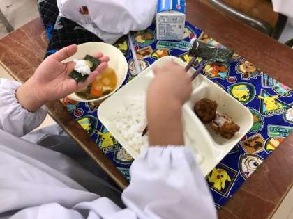 焼きのりは、くるんで食べたり、刻んでごはんに振りかけたり、そのまま食べたりと各々好きな食べ方で食べていました。
