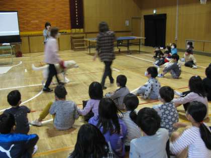 その後、ふれあいタイムとして、フェリシアちゃんとのふれ合いや、音の出るピンポン玉での卓球の体験などをしました。