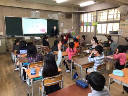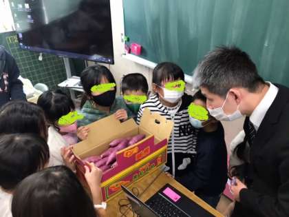 JA徳島大阪支所の方々によるサツマイモをテーマにした出前授業がありました。大阪からも近い徳島県の紹介の後、サツマイモの秘密について学習しました。時間の終わりには、サツマイモクイズに挑戦!!子どもたちは、大喜びでした。