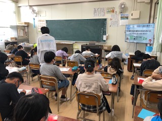 11月9日(月)、サントリーの方による水育の学習をしました。私たちの生活に水は、欠かせません。その水について、いろいろなことを学びました。みんな一生懸命、学習していました。