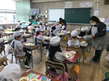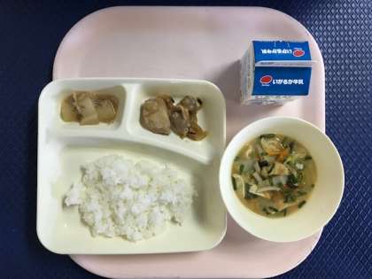 今日の給食は「鶏肉の甘辛焼き・みそ汁・だいこんの煮もの・ごはん・牛乳」でした。