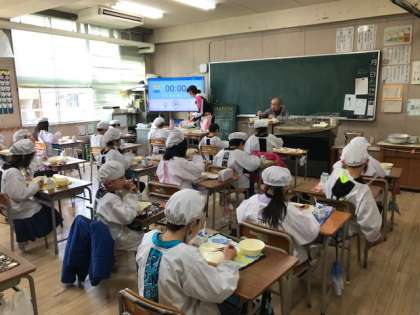 カレー味のさばのたつたあげは、骨もなくサクッと揚がり、児童に好評でした。