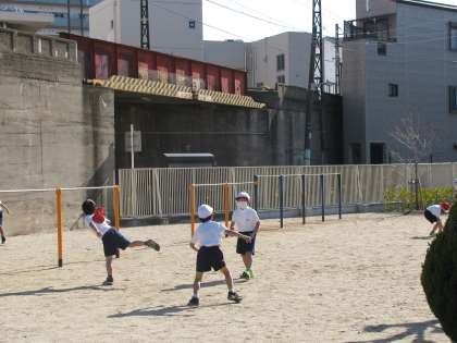 今日は1年生が運動場でむかし遊びを体験しました。むかし遊びをする機会が減っている子供たちにとって貴重な経験となりました。マスクをして距離をしっかり取ってみんな楽しく学ぶことができました。