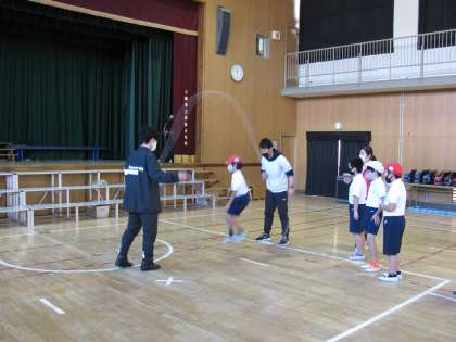 今日はダブルダッチの世界チャンピオン経験者の方を外部講師としてお招きし、5年生が夢授業を受けました。授業では講師の人から夢をつかんだ経験談を聞いたり、ダブルダッチを実際に体験したりしました。その道のプロから様々なことを学ぶことで、また大きく成長するきっかけとなりました。