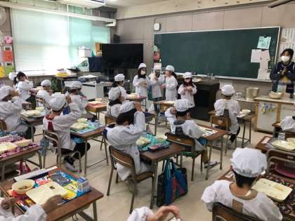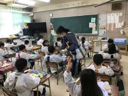 1年生の教室で、なじみのうすいとら豆ですが先生の「まずは1つ食べてみよう!」の声掛けで味見の後、「増やしてほしい子いますか?」で手がたくさん上がっていました。
