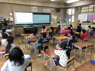 金曜日の朝学習は、英語の短時間学習です。2年生がABCソングを楽しく口ずさんでいました。