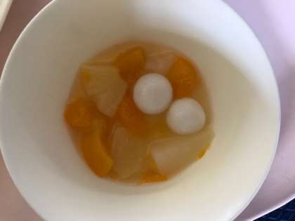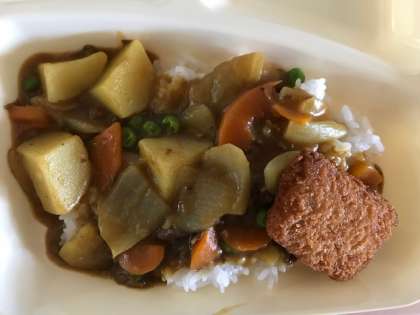 今日は入学祝い献立の「カツカレーライス・フルーツ白玉・牛乳」でした。