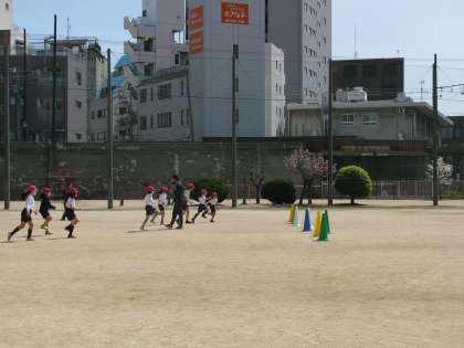 今年度は火曜日と木曜日に、成南中学校体育科・玉城先生が来てくれることになりました。今日は特に快晴だったので、みんな元気いっぱい楽しく体育の授業を受けていました。