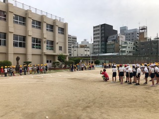 66名の新1年生、学校生活にも慣れてきましたが、みんなの前で緊張しながらも、声をそろえてあいさつすることができました。
