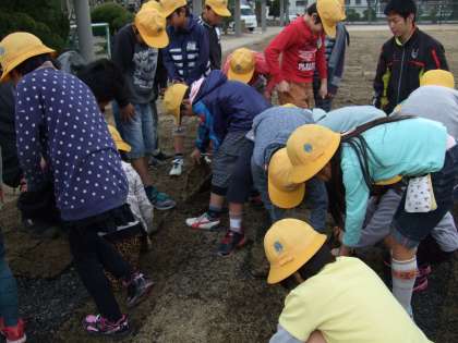 みんなで芝生を植えました。どろんこになって頑張りました。地面にしっかり根付くまでしばらくかかります。子どもたちは、もうすぐ四年生。新しい学年でも大きく成長していってくれることを願います。夏頃には、芝生も育ってみんなで遊べるといいですね。