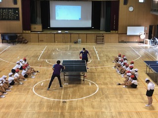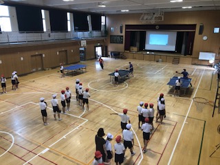 今日は、5年生がトップアスリートとスポーツをする夢授業がありました。2004年アテネオリンピック出場・卓球の新井周選手が今日の先生です。子どもたちは、そのスピード感やテクニックにびっくりしながらも、一生懸命打ち返していました。
