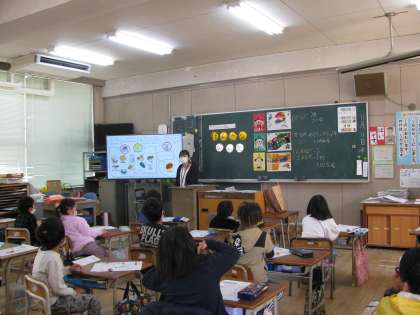 元気なからだをつくるために、すききらいをせずに給食を食べること。あか・き・みどりの食べ物をバランスよく食べることが大切なことを教えてもらいました。