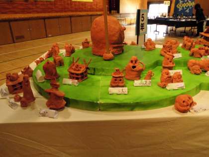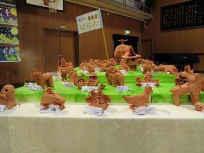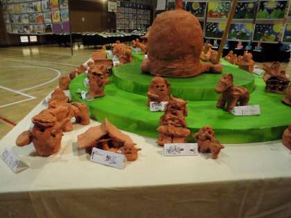 馬・人・家など、手を茶色に染めて作ったはにわは、どれも表情豊かな力作ぞろいです。