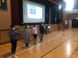 今日の終業式では、3年生と6年生が作文発表をしました。3年生からは、「苦手な勉強に取り組んでいきたい」「3学期もがんばりたい」との発表がありました。6年生からは、10月のヒロシマ修学旅行の報告がありました。「まずは、一人ひとりが自分のそばにいる人のことを大切にすること」「相手の気持ちを考えること」が大切だとのメッセージがありました。