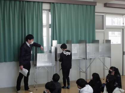 今日は西成区役所の方に選挙について出前授業をしていただきました。クイズや実際に選挙の流れを体験して、選挙とはどういったのか学ぶことができました。