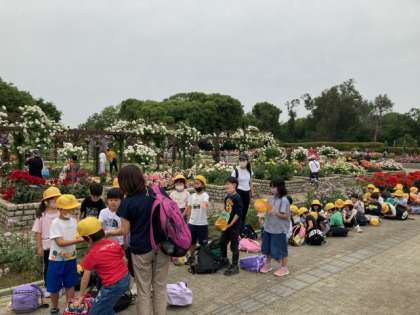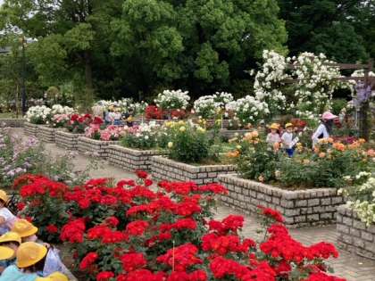 お弁当休憩が済んで、見事に満開のバラ園で、グループで探検活動です。