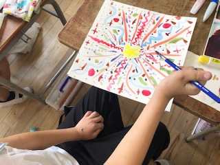 3年生には、図画工作で絵の具を使った学習をしています。4年生の教室では、課題が早く終わった児童が、タブレットを使ってドリルに取り組んでいました。