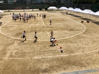 運動場では、5年生が元気いっぱい走っていました。もうすぐ運動会です。本日、各家庭にプログラムを2枚ずつ配布しております。当日の入校証となります。ご確認をお願いいたします。