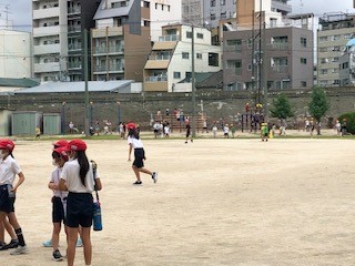 最近は雨の日が多く、なかなか外で遊べる日がありません。今日も昼過ぎから雨の予報があります。午前中、たくさんの子どもたちや先生たちが運動場に出て、思い思いの遊びを楽しんでいました。