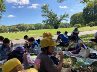 お弁当タイムになりました。たてわり班での昼食です。